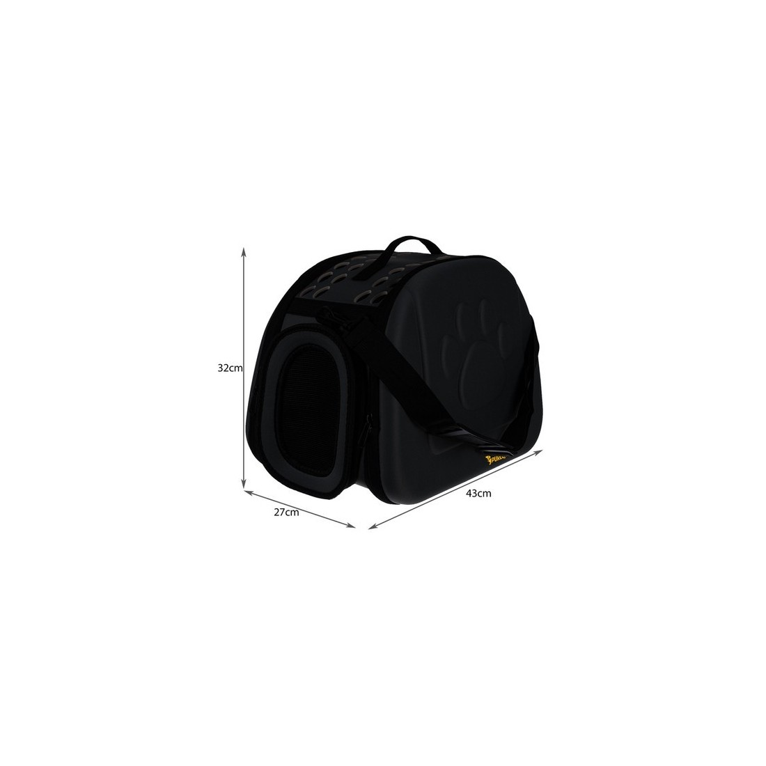 NEŠIMO DIRŽELIS IR SULANKSTOMAS KREPŠYS - reguliuojamas peties dirželis su galimybe visiškai atskirti nuo krepšio ir ergonomiška rankena patogiam augintinio transportavimui palengvina naudojimą. Itin patogus užsegimas užtrauktuku esantis priekyje ir abiejose krepšio pusėse, supaprastina gyvūno įlipimą ir išlipimą. Krepšys susilanksto iki nedidelių matmenų, todėl jį itin lengva laikyti.