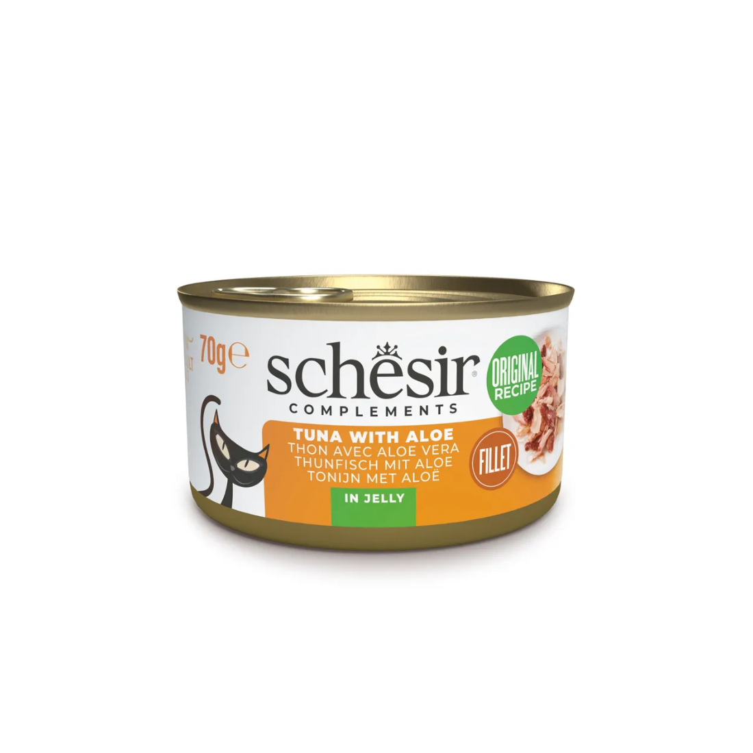 Schesir plėšytos mėsos filė su daug skysčio,tunas su aloe drebučiuose. Padeda katėms suvartoti daugiau skysčių.
