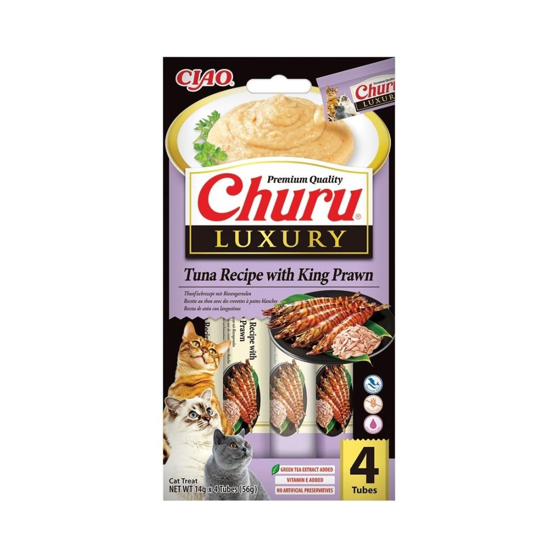 Churu Cat Luxury skanėstas tyrelė su Tunu ir Karališkosiomis Krevetėmis, 4x14g