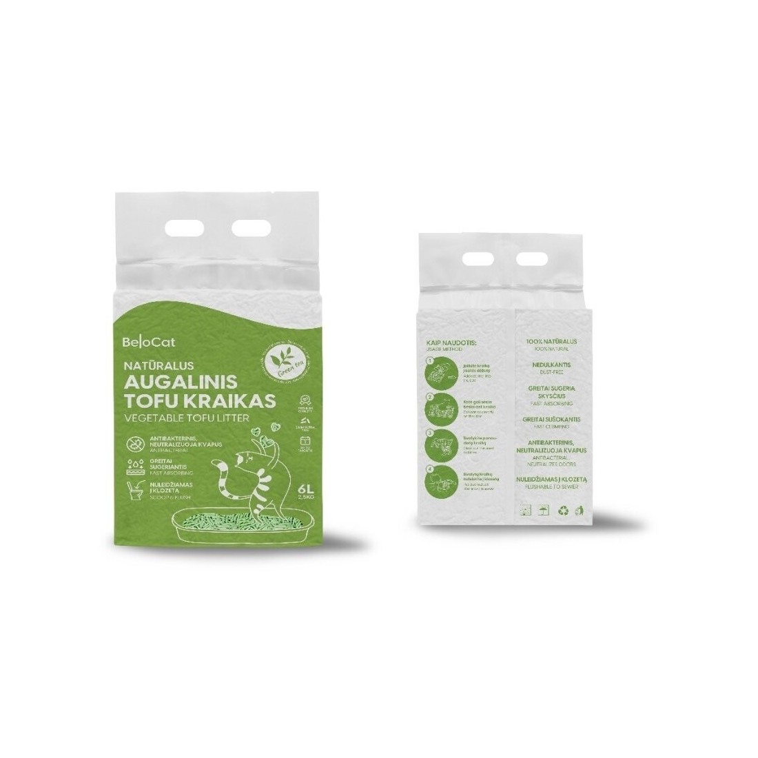Tofu kačių kraikas greitai sugeria drėgmę ir neutralizuoja nemalonius kvapus bei yra švelnus ir malonus minkštoms katėms pėdutėms. Sugerdamas skystį kraikas sulipma į gabalėlius. Kraikas visiškai nedulkantis, tvarus, ekologiškas ir draugiškas aplinkai. Taip pat biologiškai skaidus, todėl jį galima kompostuoti ir naudoti kaip natūralią trąšą